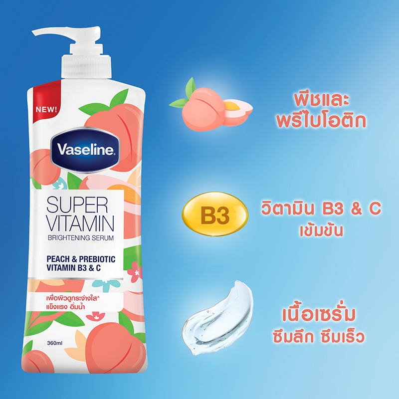 Vaseline Supervitamin Peach & Prebiotic Vitamin B3 & C brightening SERUM (360ml)